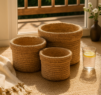 Today, this set of three woven baskets isn’t just for storage—it’s for keeping stories alive. Crafted from strong natural fibers, each size plays its own role. The large basket is perfect for blankets or laundry, the medium for magazines or household essentials, and the small for everyday items you want within easy reach.
